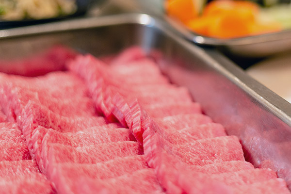 豚肉、牛肉、鶏肉、羊肉、ソーセージ、白身魚・海老・たこなどの海鮮系などお肉、魚介類、練りものなどを選びます。